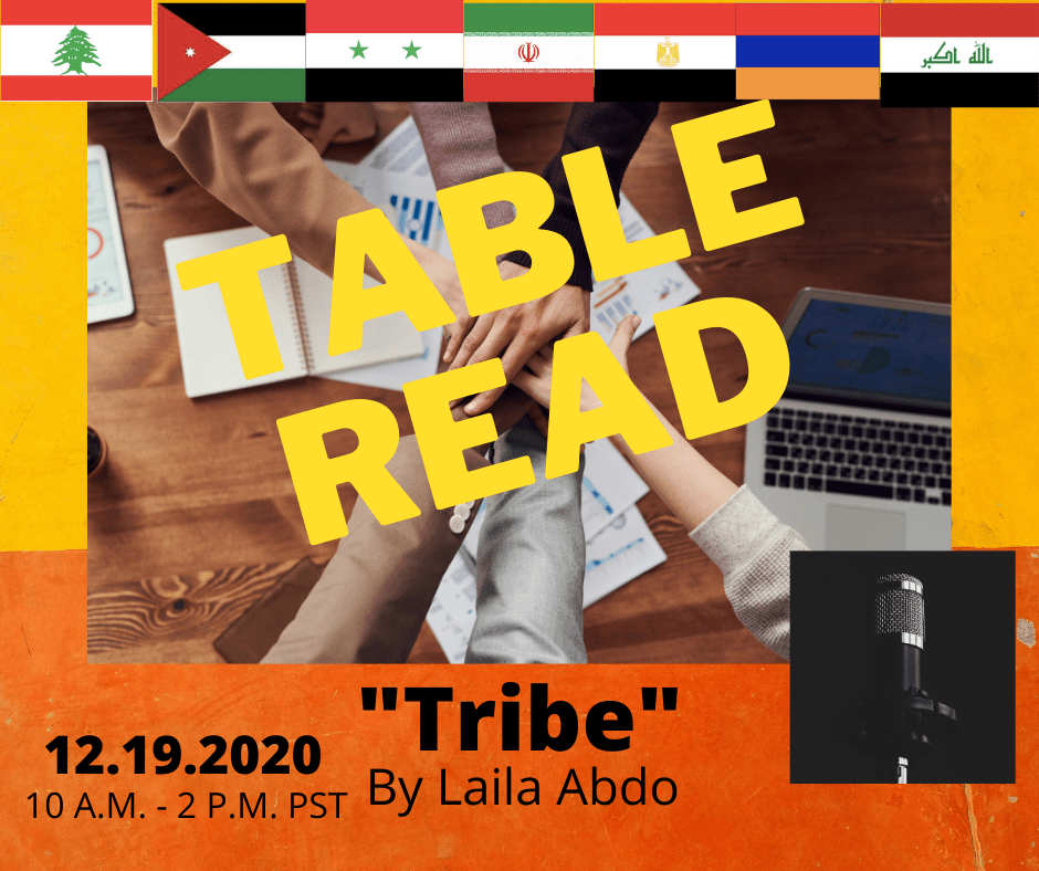 - December 19, 2020: It’s happening! The Virtual Table Read of my new screenplay “Tribe” will help catapult this script to the next level! “Tribe” is an underdog story of misfit Arabs finding community; I am so grateful for my community supporting me with this fun celebration!