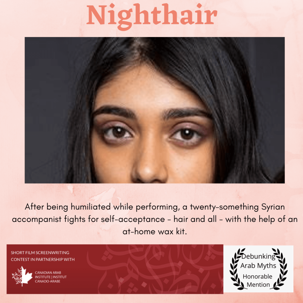 - September 2020: Grateful to speak my truth with comedy through the “Debunking Arab Myths” screenwriting contest. Y’all know it’s about my eyebrows.